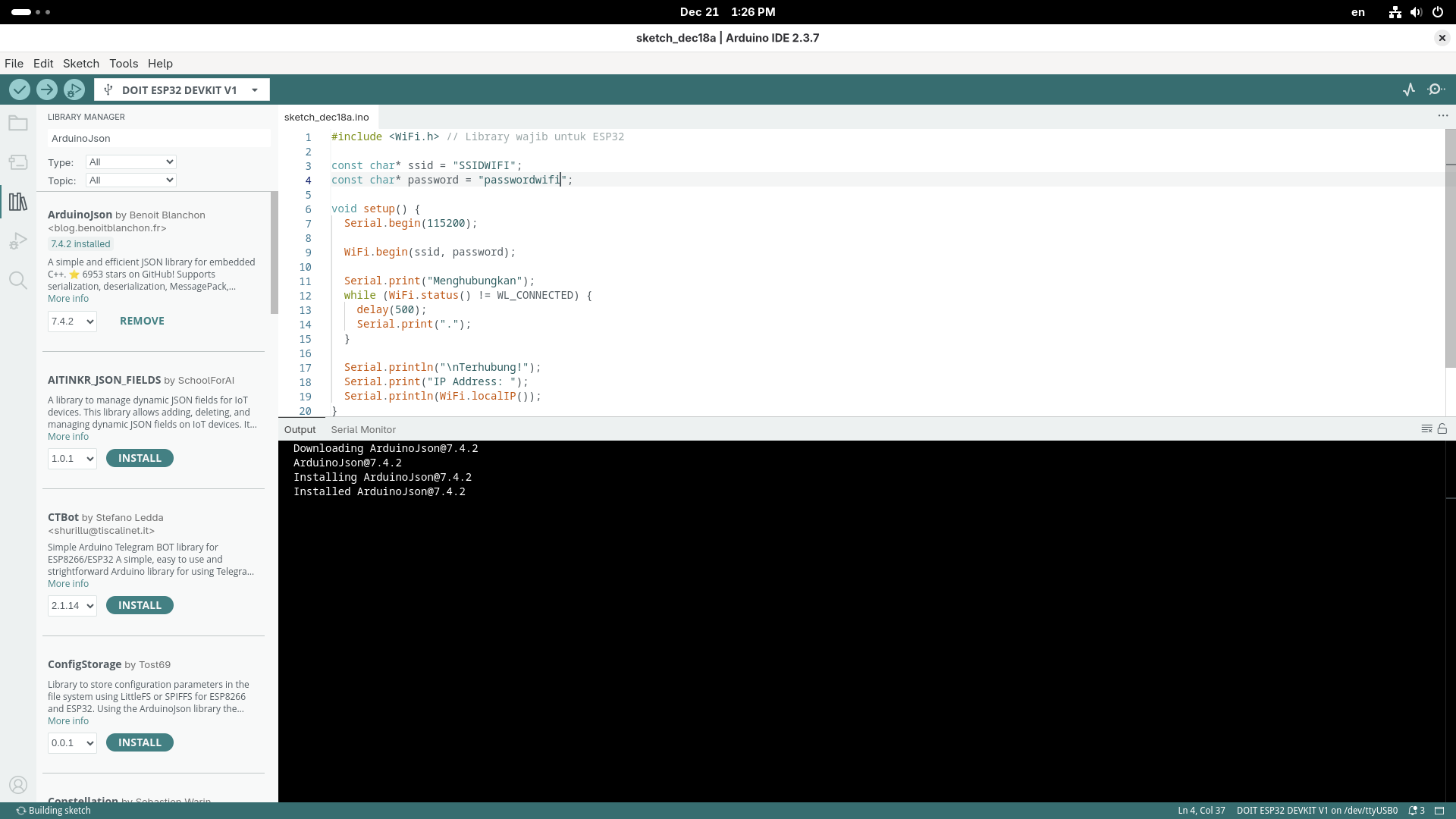 1. Persiapan: Instal Library ArduinoJson